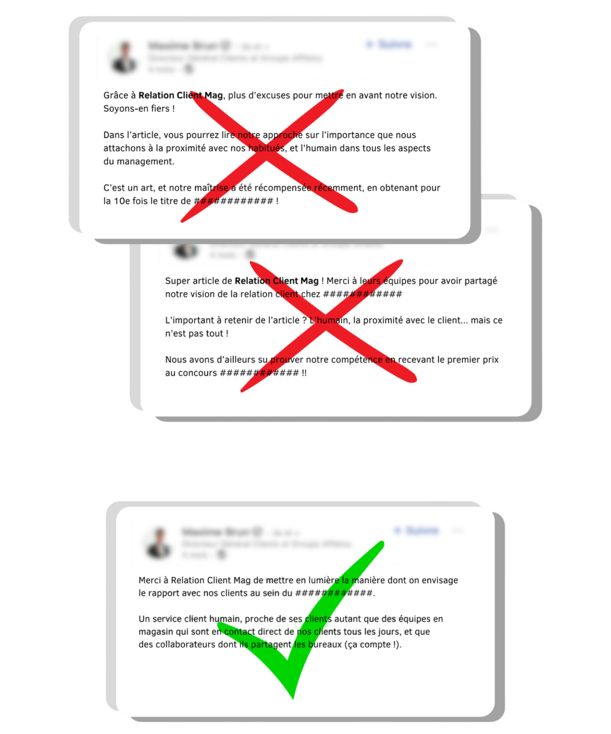 Voici le résultat sur LinkedIn (nom de l'entreprise masqué) :
