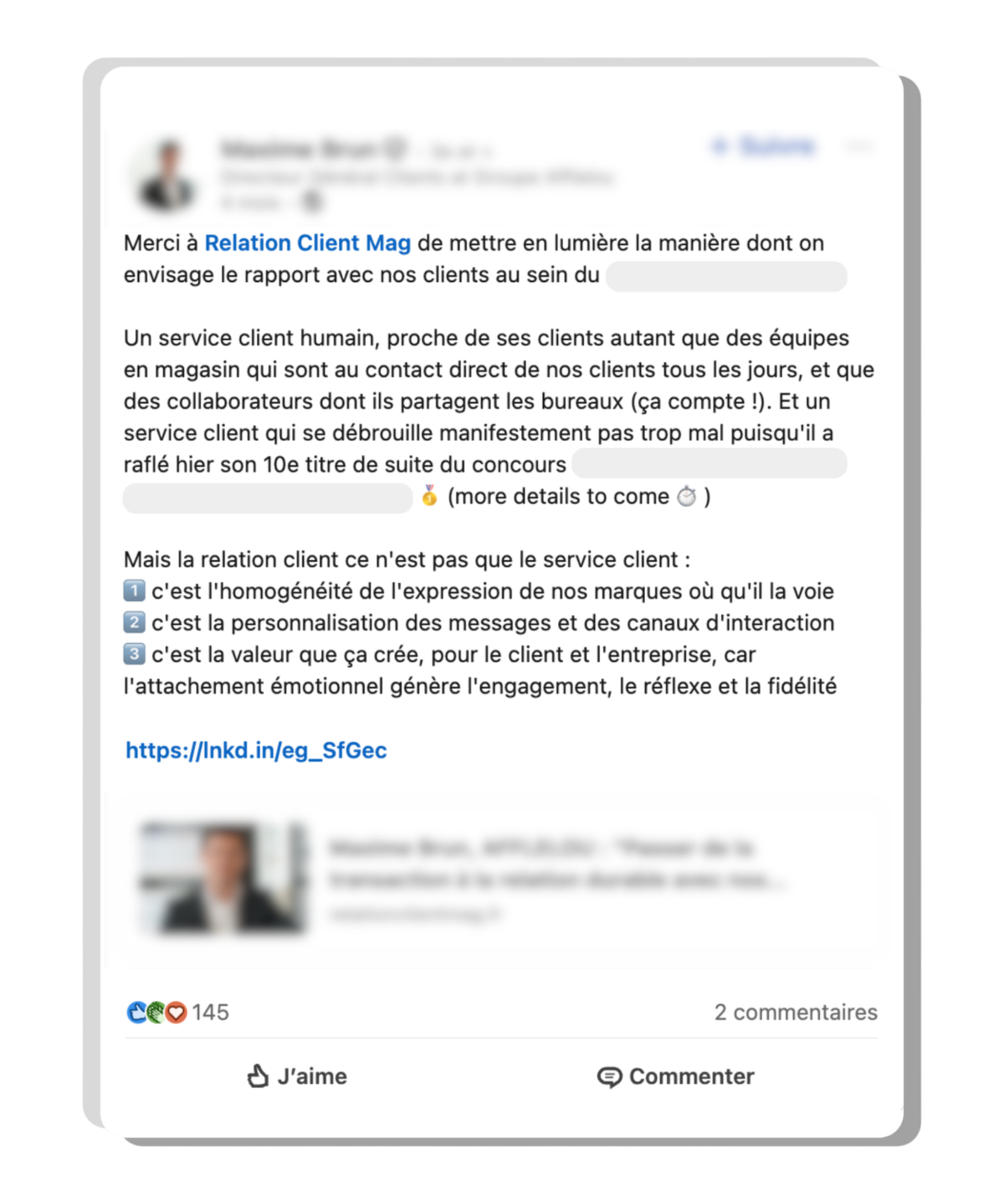 Voici le résultat sur LinkedIn (nom de l'entreprise masqué) :